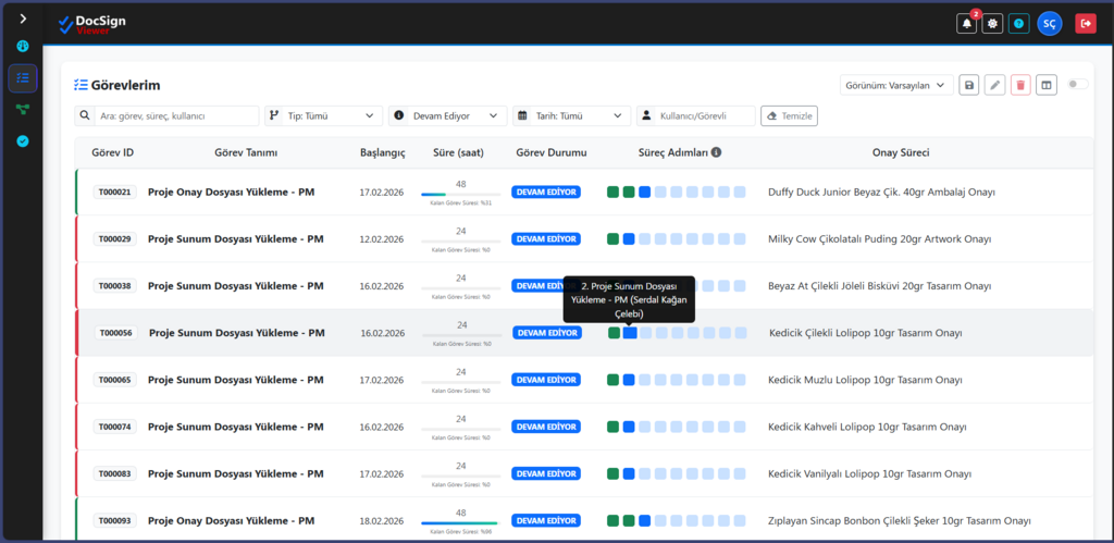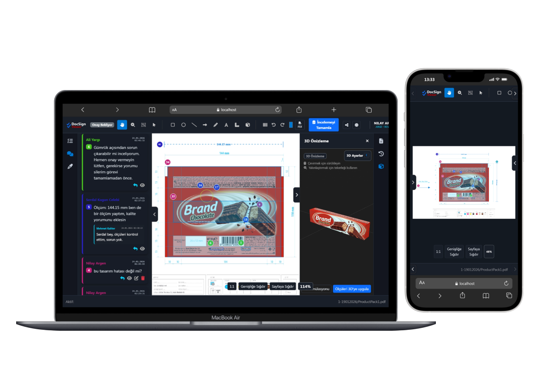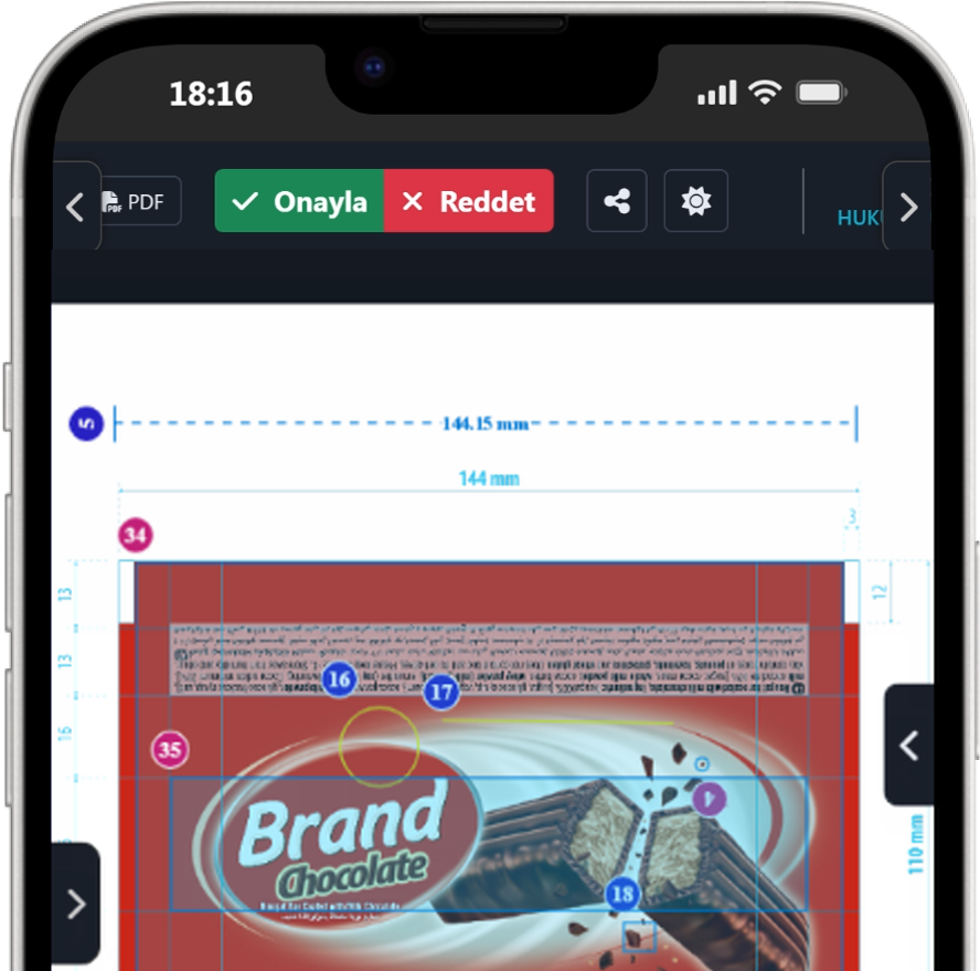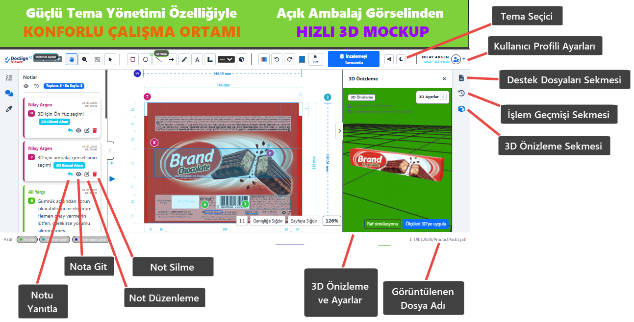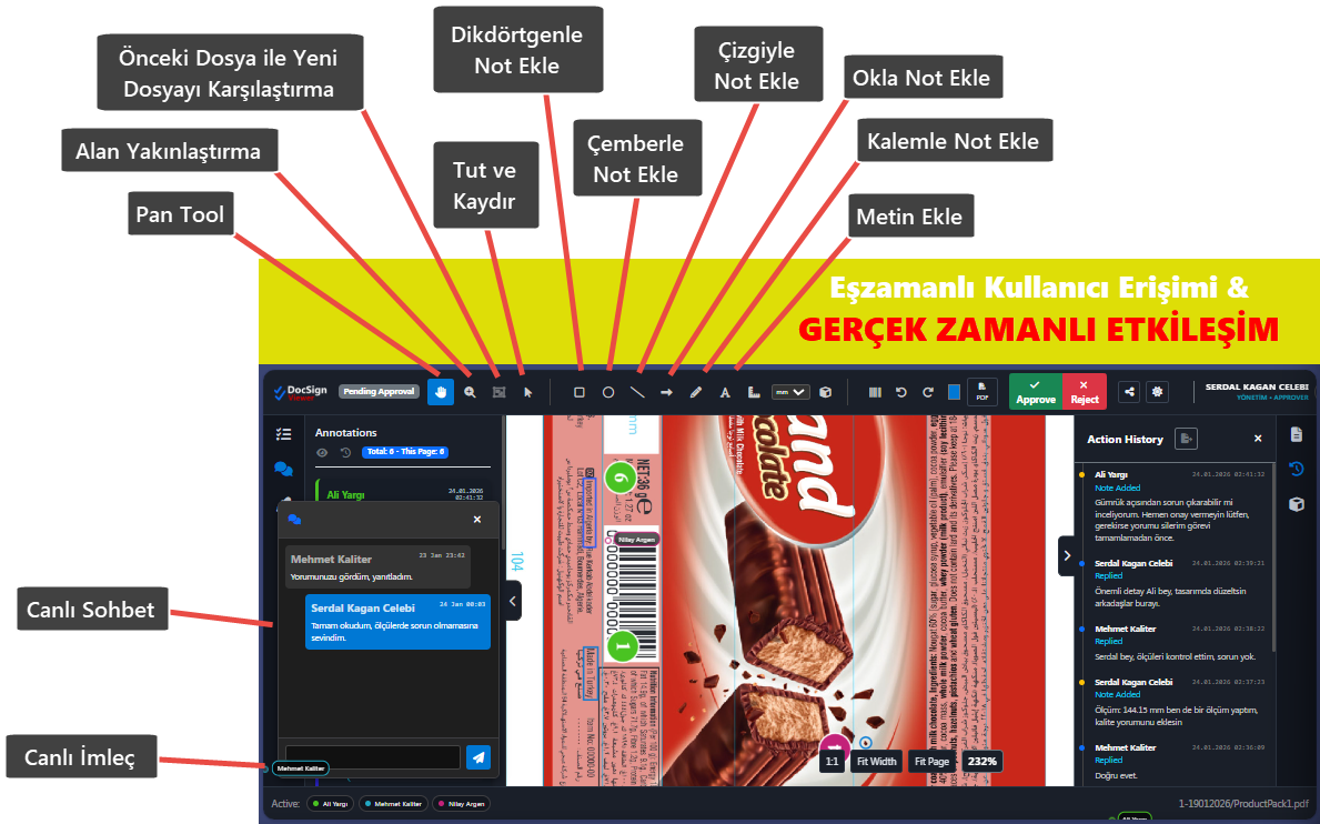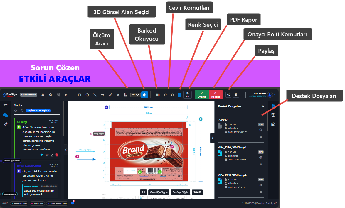 DocSign Kullanımı: Ambalaj görselleri üzerinde noktasal notlar ekleniyor, inceleme ve red süreçleri kolaylaşıyor.